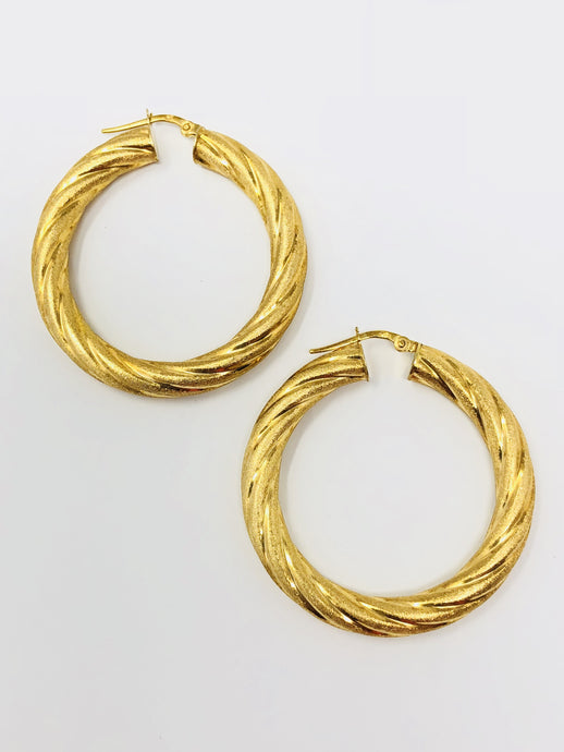 14k Yellow Gold Medium High Polish Italian Hoop Earrings